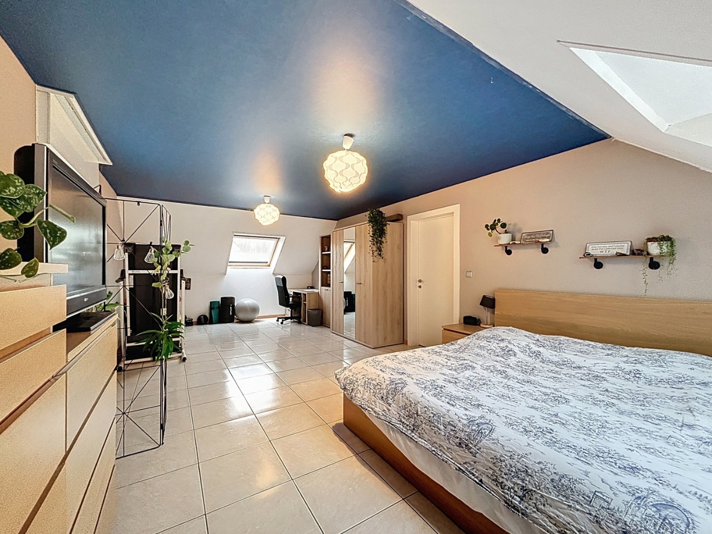La villa se compose: au rez-de-chaussée: un hall d'entrée avec toilette, un séjour lumineux avec accès à la terrasse ensoleillée et le jardin, cuisine entièrement équipée, salle de bains avec baignoire, douche, lavabo en meuble et toilette; chambre à coucher, espace bureau et grand débarras avec raccordements machine à laver et séchoir. A l'étage: 2 chambres à coucher spacieuses, hall de nuit avec rangement et une deuxième salle de bains avec double lavabo, baignoire, douche et toilette. Le grenier est accessible par une trappe d'escalier. Chauffage central au gaz avec chaudière à condensation , 12 panneaux solaires et deux citernes d'eau de 15.000 litres.